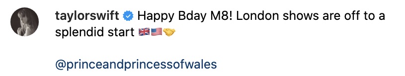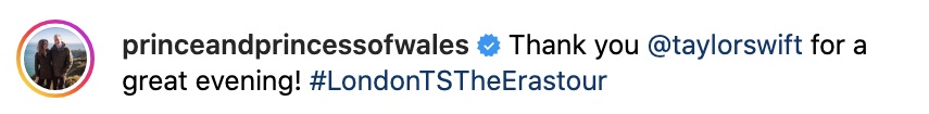 “Thank you @taylorswift for a great evening! #LondonTSTheErastour”