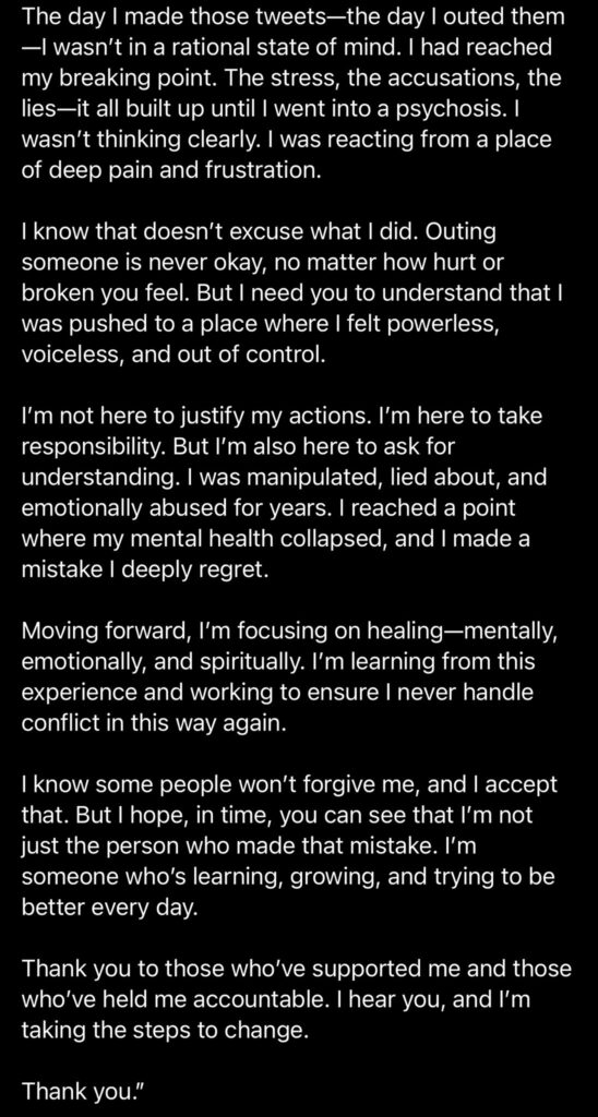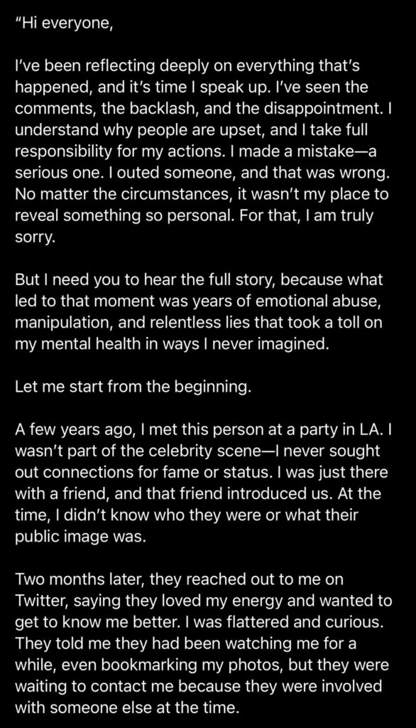 In a lengthy letter shared to X (Twitter), Almonte apologizes, unpacks his side of the story, and claims he was subject to “emotional abuse.”