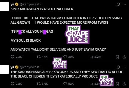 In his continuous online rants, Ye accuses the SKIMS owner of being a sex worker and trafficker in tweets made on X as seen below:
