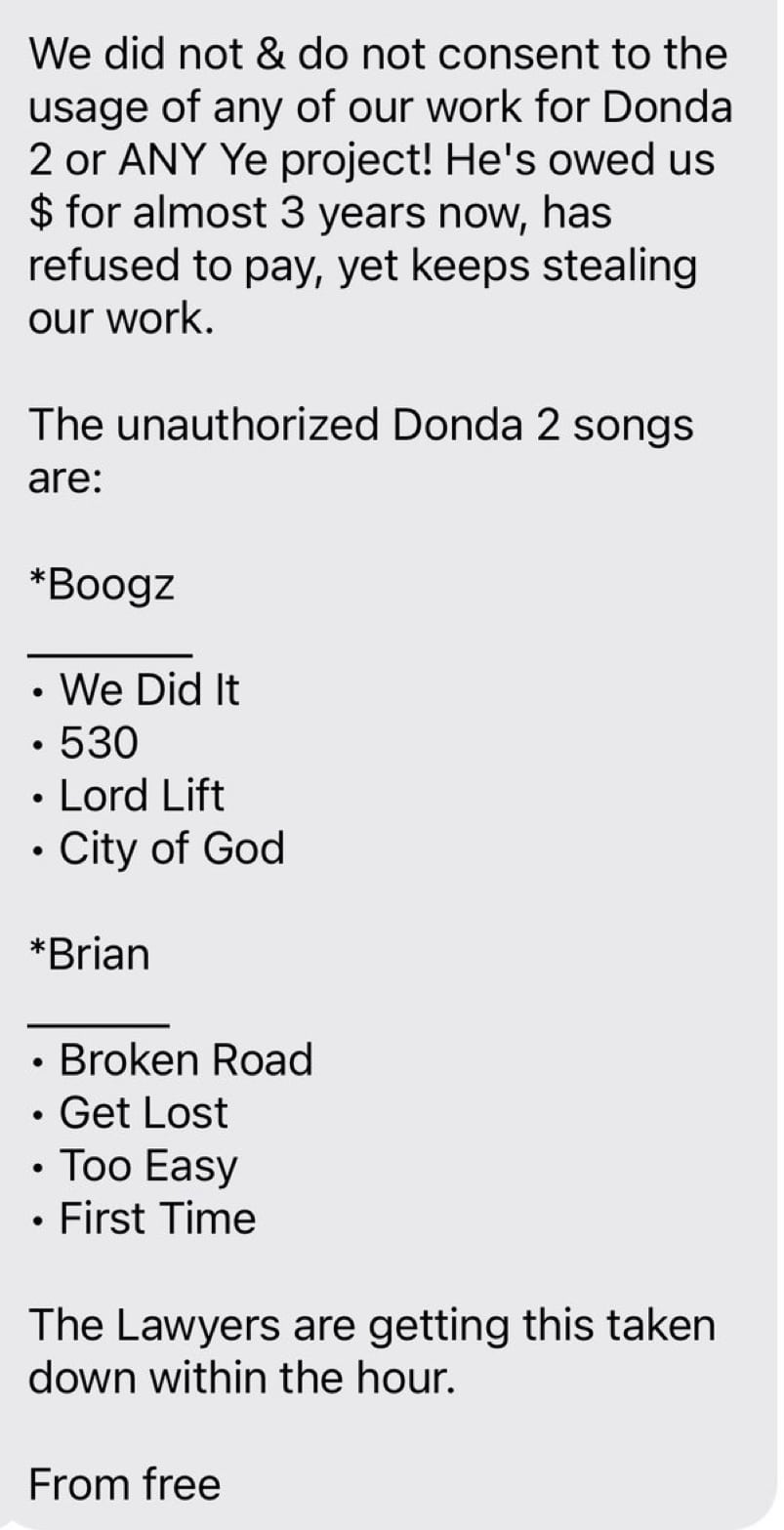 DeAndre “Free” Maiden, longtime collaborator with West and manager of producers Boogz Da Beast and Brian “AllDay” Miller, just put the rapper on blast for allegedly skipping the check on eight tracks. Yes, eight. Now they’re threatening to pull the whole project from streaming services.