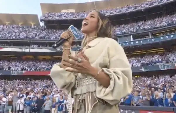 The ‘Nasty’ singer shut down the Dodger Stadium crowd this week with her rendition of ‘The Star-Spangled Banner’ before Game 4 of the World Series.