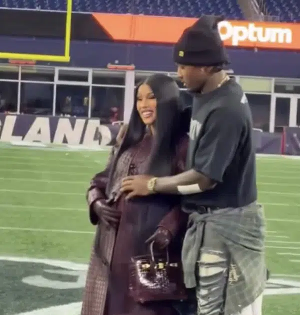 The sighting, which included an on-field belly rub, comes after Cardi’s shared with fans that she will be at matches to support her man, pregnant and all.