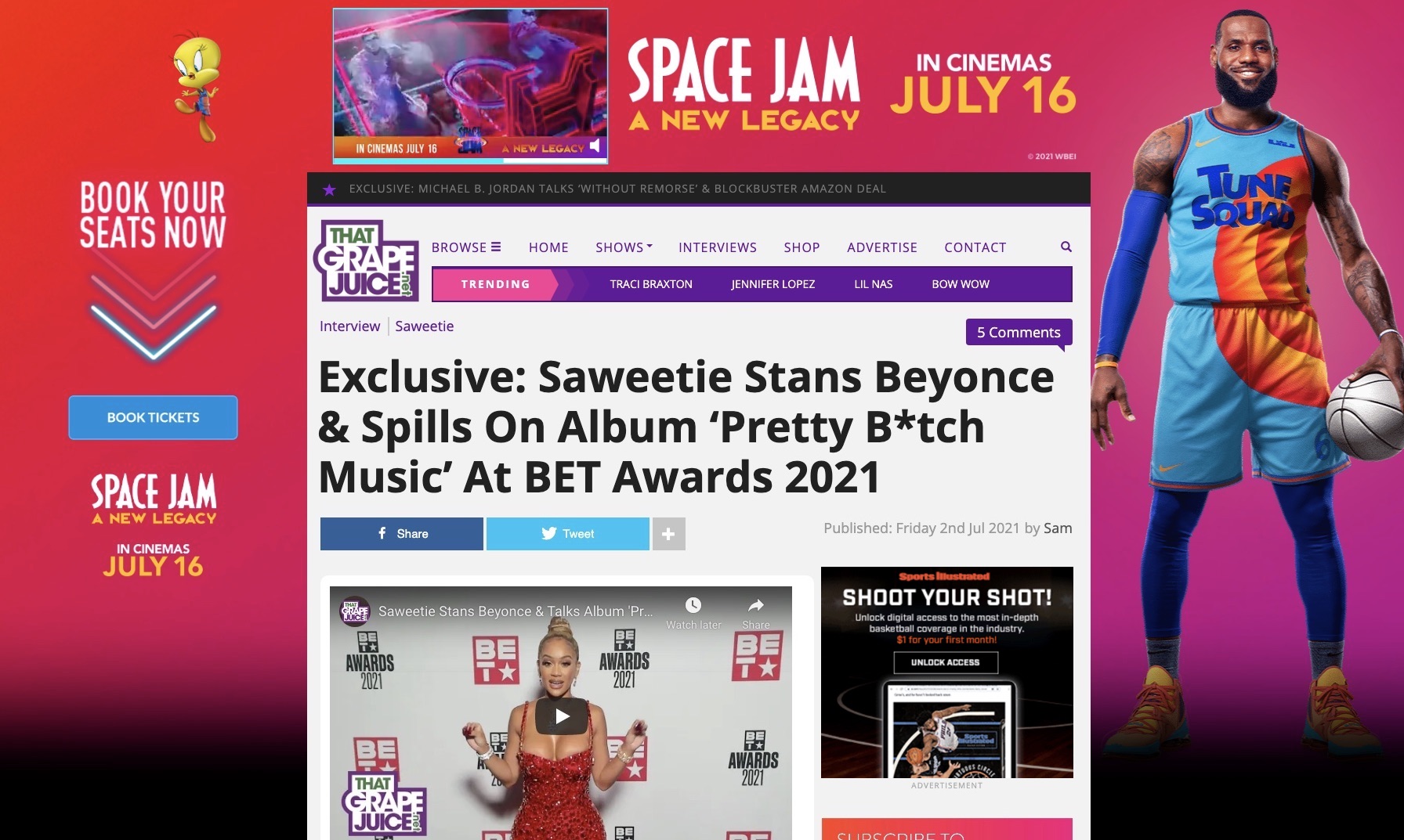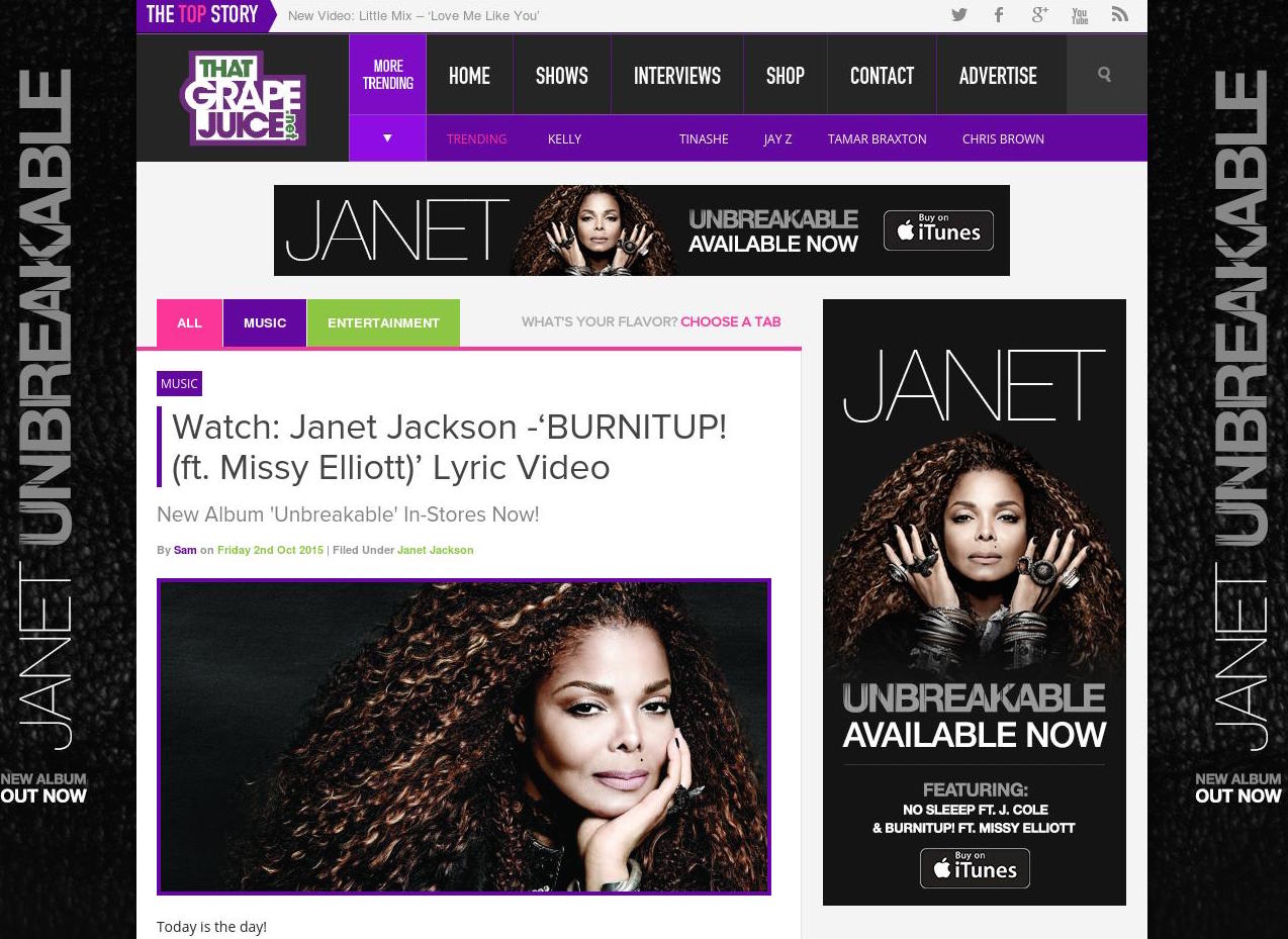 That Grape Juice stands as one of the net’s premier Urban Pop Culture websites. An award-winning one-stop-shop for all things Urban Pop music and Entertainment, established here are a large and loyal readership who lap up the daily banter of lead writer Sam and the team, as well news, reviews, and exclusive interviews (Ariana Grande, Michael B. Jordan, Janet Jackson, Mary J. Blige, Destiny’s Child, Kevin Hart, among others)