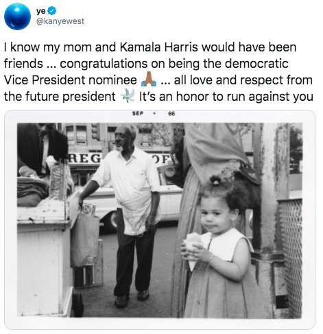 Taking to Twitter, West – who, himself is running for President, shared a picture of Harris as a child with the caption: