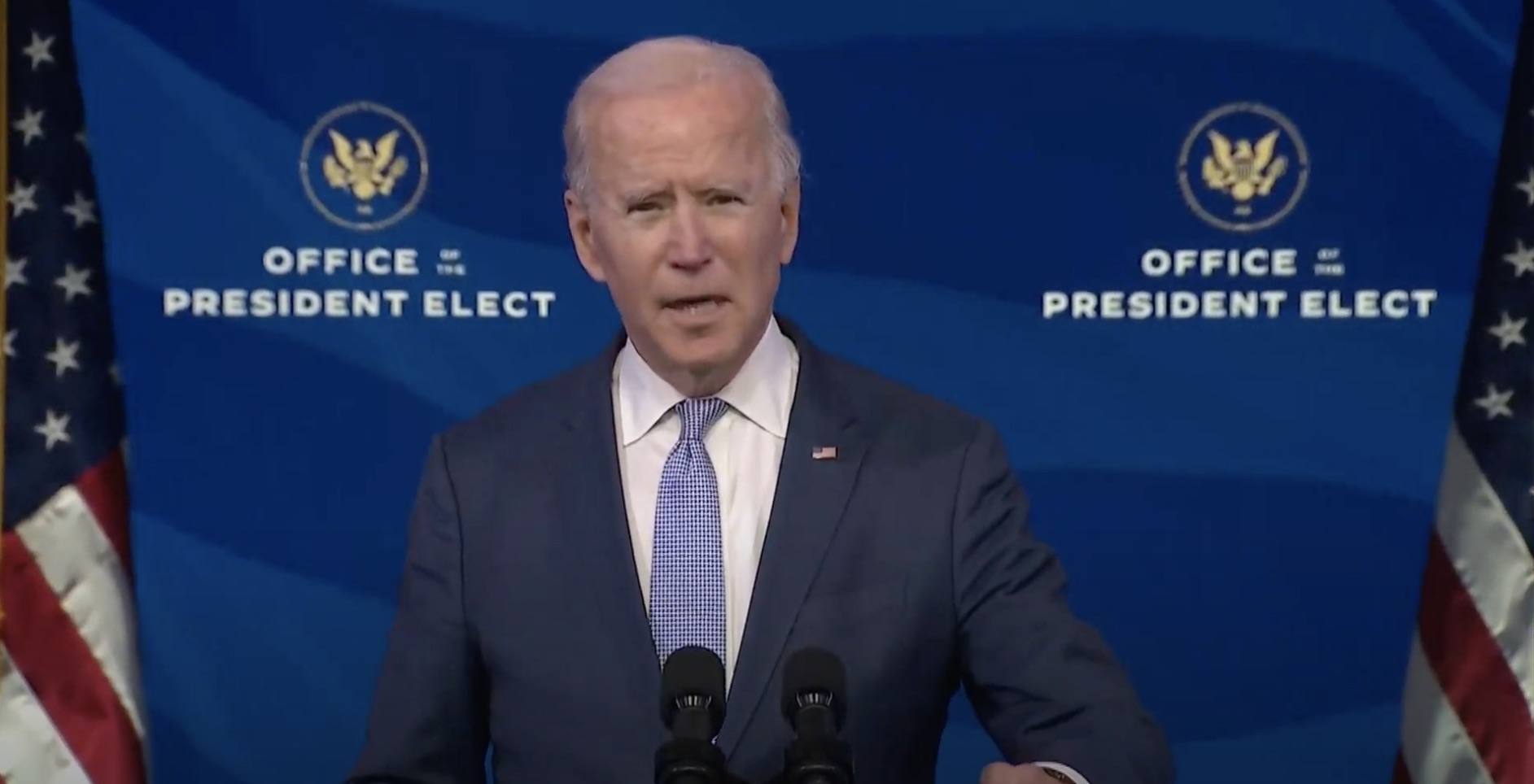 Addressing the nation from Wilmington, Delaware, Biden urged the pro-Trump “mob” to “pull back and allow the work of democracy to move forward.”