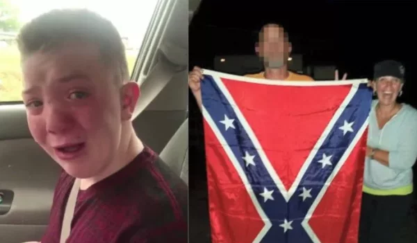 There is nothing funny about adults making fun of a child, it’s not his fault that his parents are white supremacists, disgusting behavior.