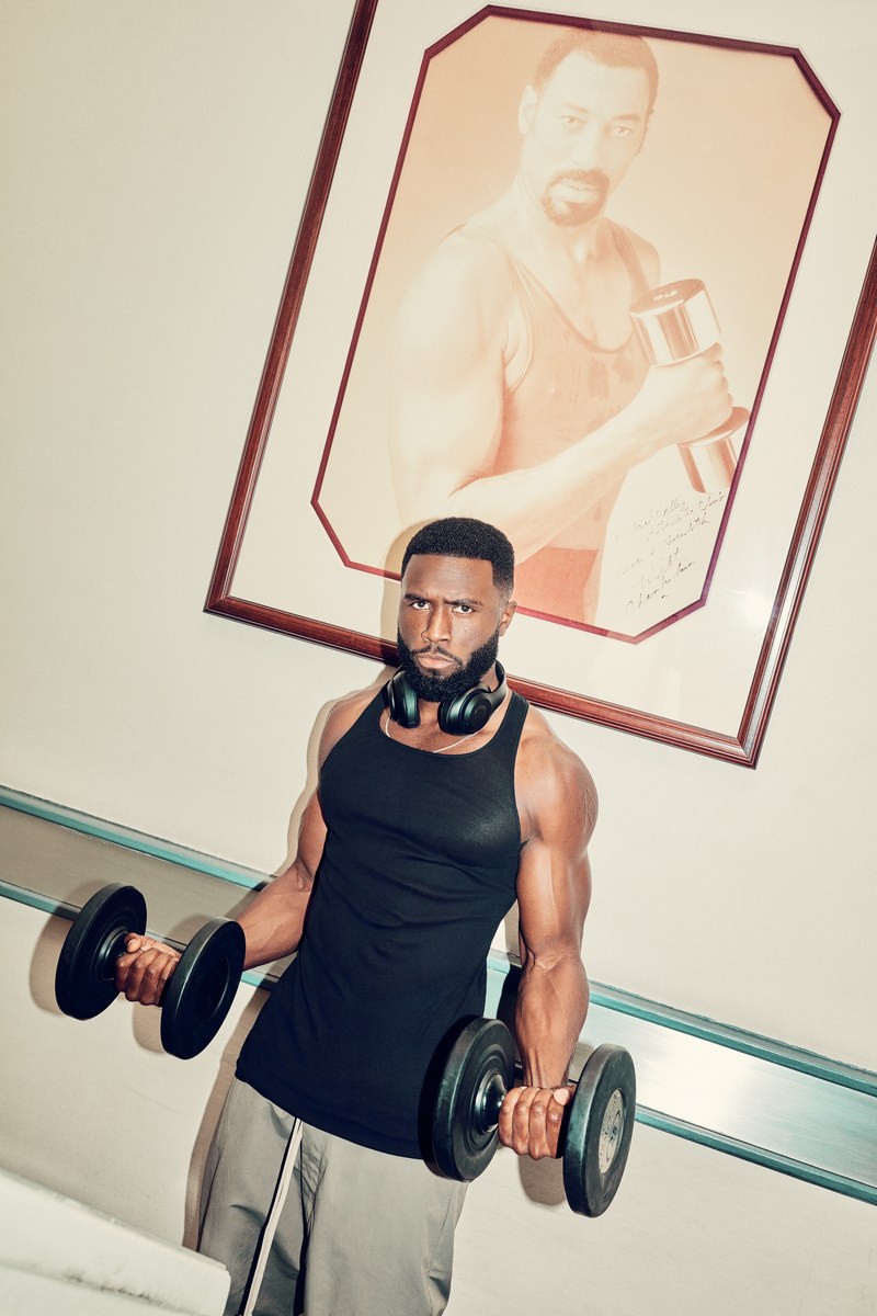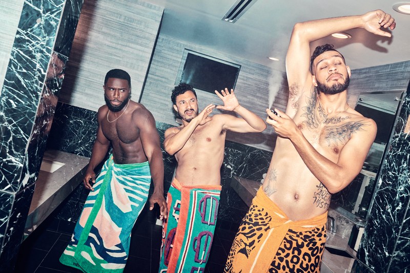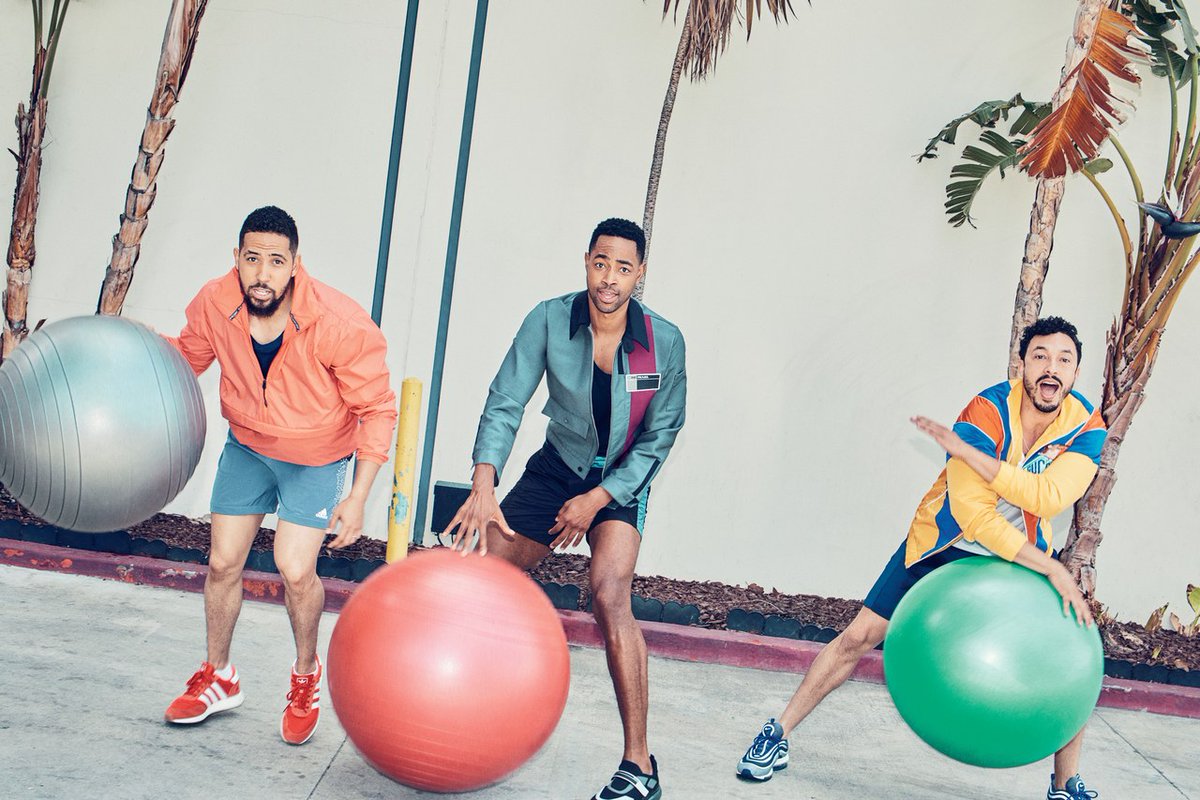 Gym themed, the tongue-in-cheek shoot sees Jay Ellis, Y’Lan Noel, Sarunas Jackson, Wade Allain-Marcus, and Neil Brown Jr stretch and flex.