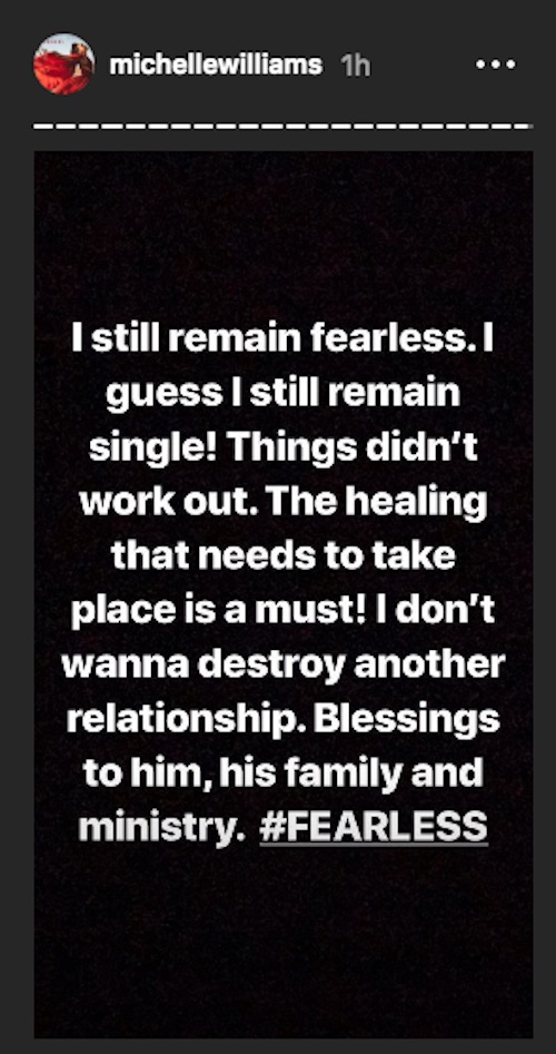 Another couple have gone their separate ways. And sadly it’s Michelle Williams and fiancé Chad Johnson.