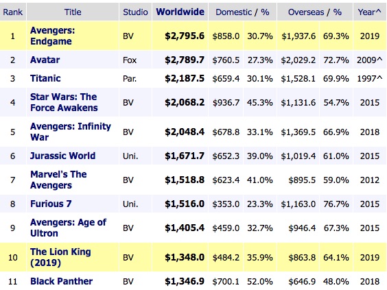 According to Box Office Mojo, the Disney flick has now become the 10th biggest movie of all time after amassing a colossal $1.34 Billion at the global box office.