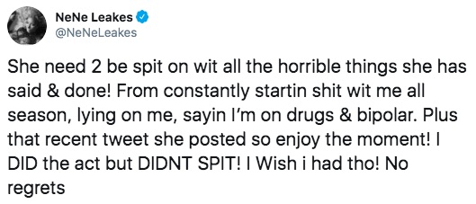 Indeed, before the current season even commenced, the former Miss USA hit the promo rounds and revealed that Leakes had attempted to spit on her.