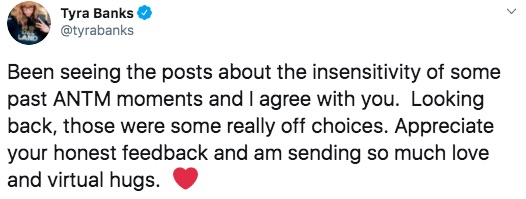 Tyra Banks is taking accountability.