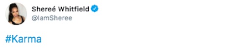 Whitfield, who heads up luxury althleisure line She By Sheree, tweeted “#Karma” moments ago. And the timing has folk talking: