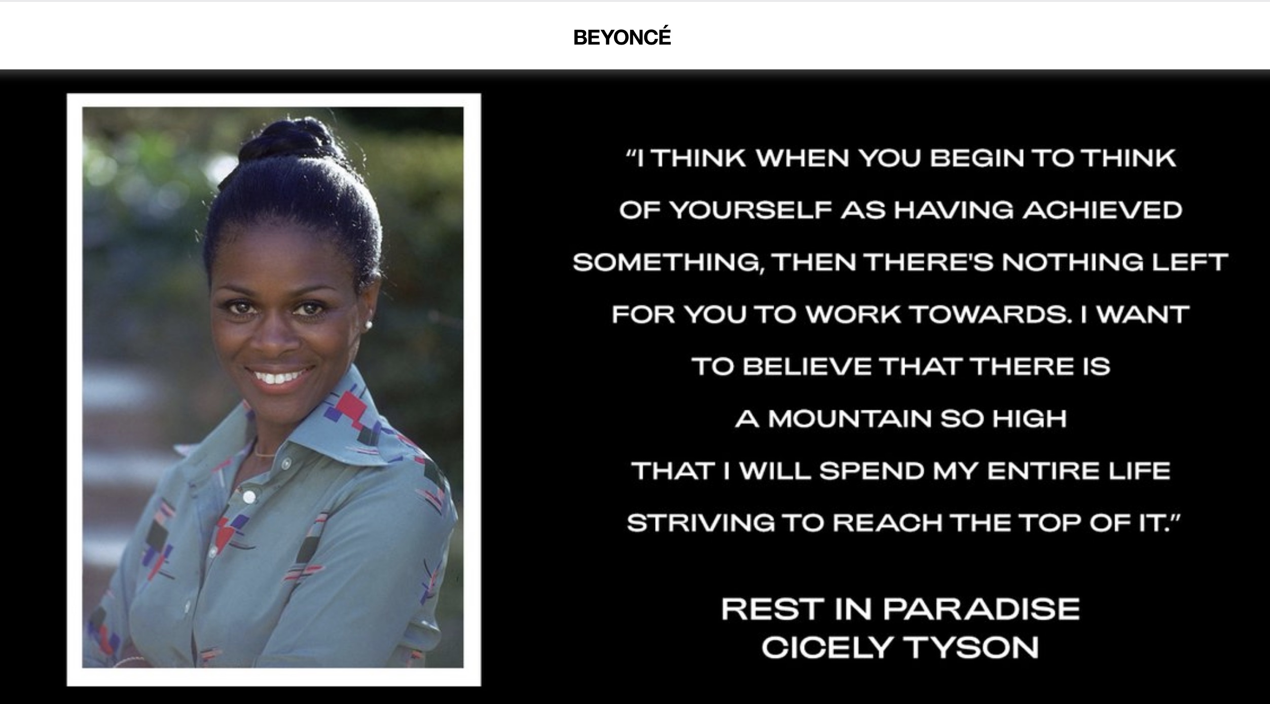 In her extraordinary career, Cicely Tyson was one of the rare award-winning actors whose work on the screen was surpassed only by what she was able to accomplish off of it. She had a heart unlike any other—and for 96 years, she left a mark on the world that few will ever match. pic.twitter.com/JRsL3zlKtP