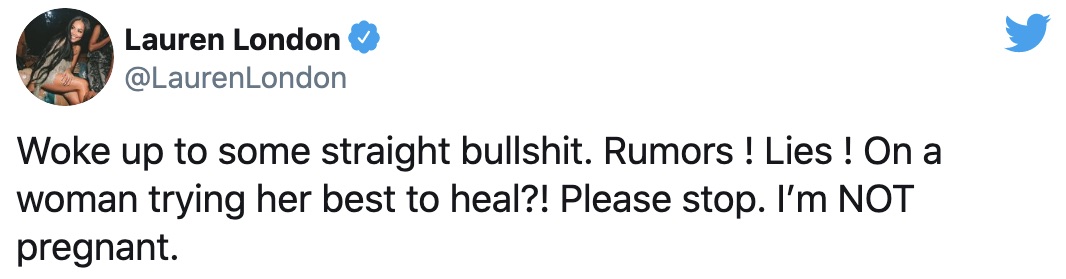 Lauren London has hit back at claims that she is pregnant with her third child.