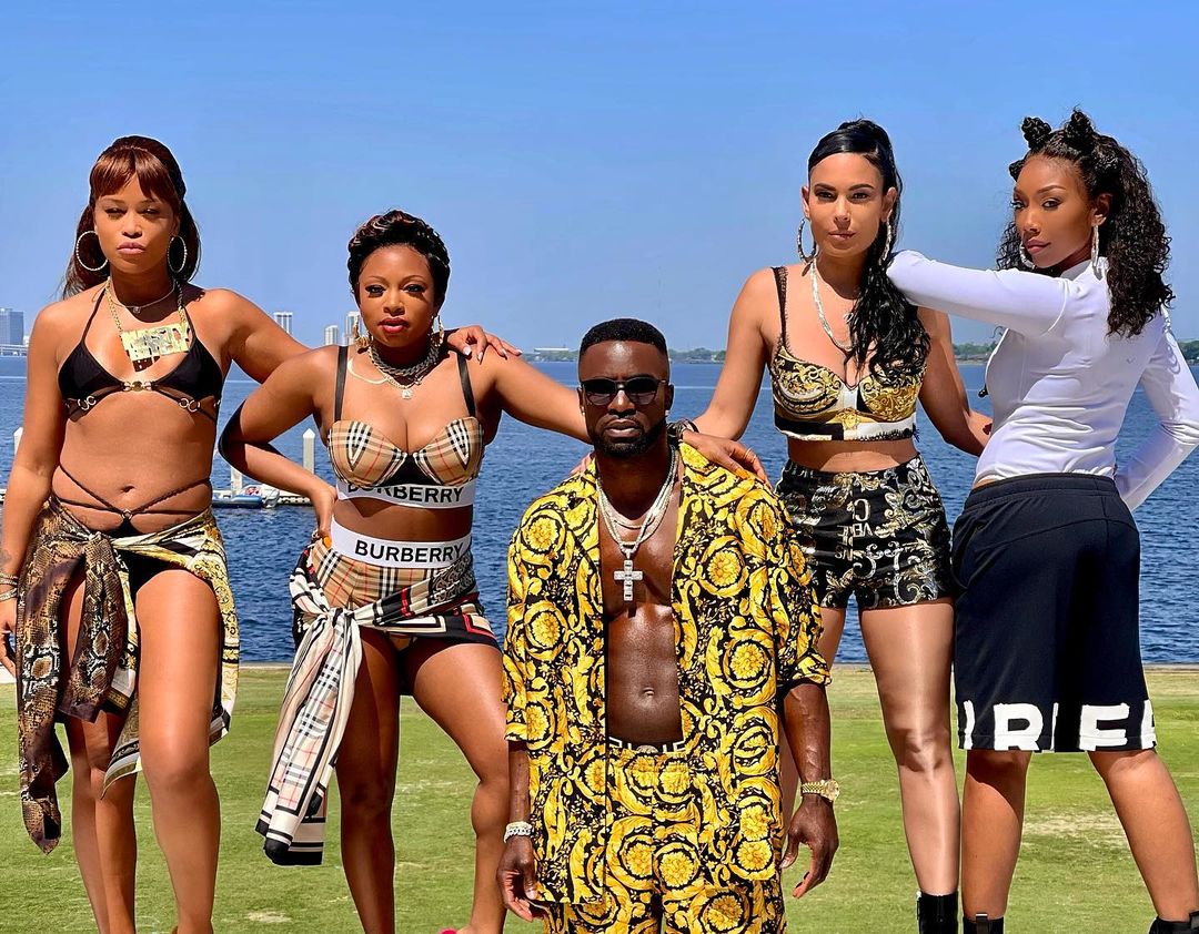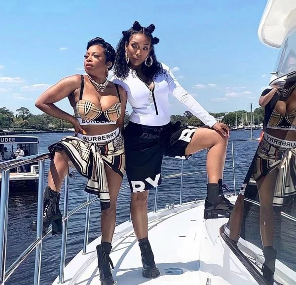 Brandy also unwrapped a shot with herself Naughton, Eve, and Velazquez, captioning it: