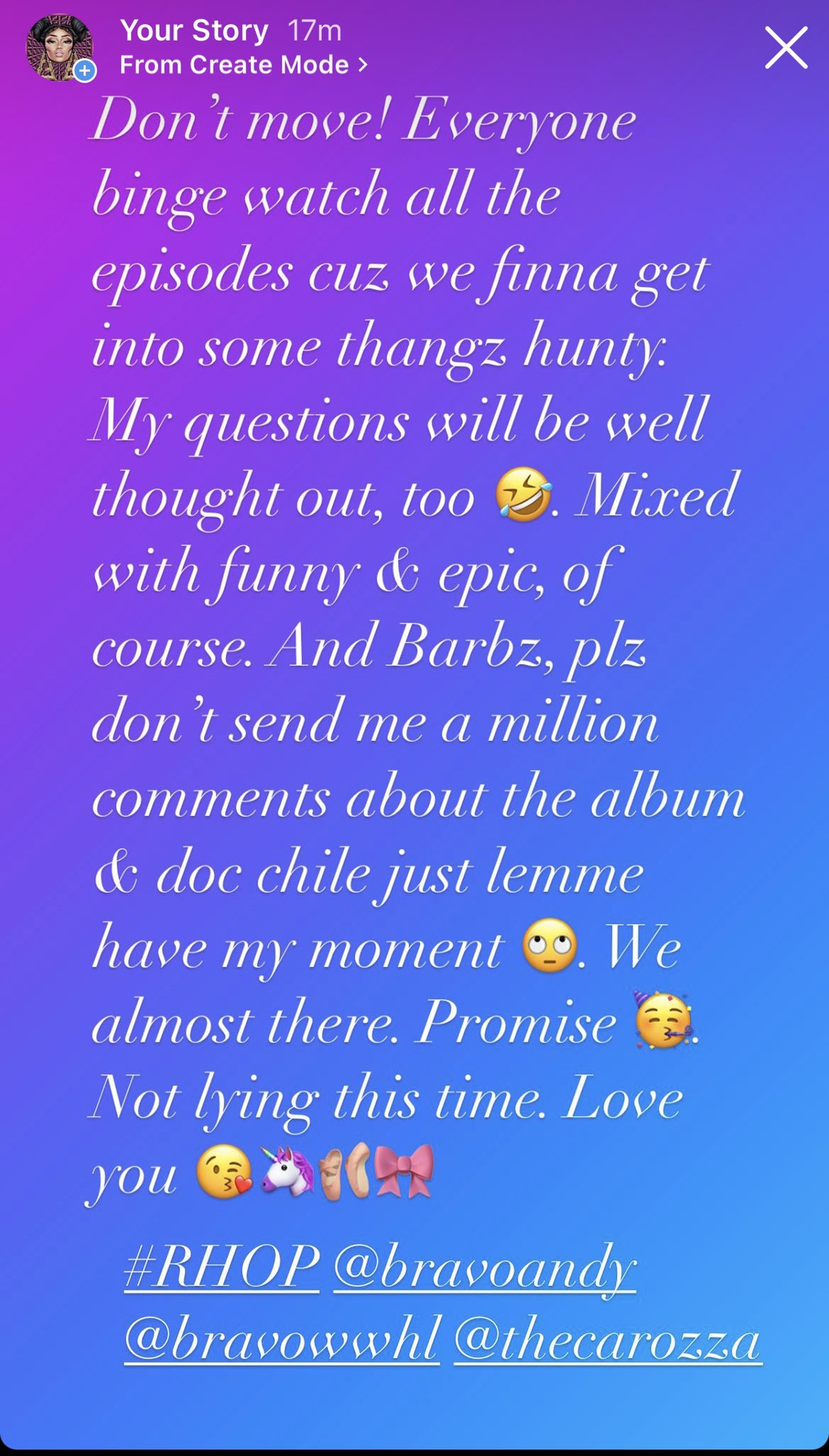 See, it began with her sharing a fan-made remix of her smash ‘Moment For Life’ featuring the cast of the hit Bravo series. She jokingly teased that she wanted to host the reunion.