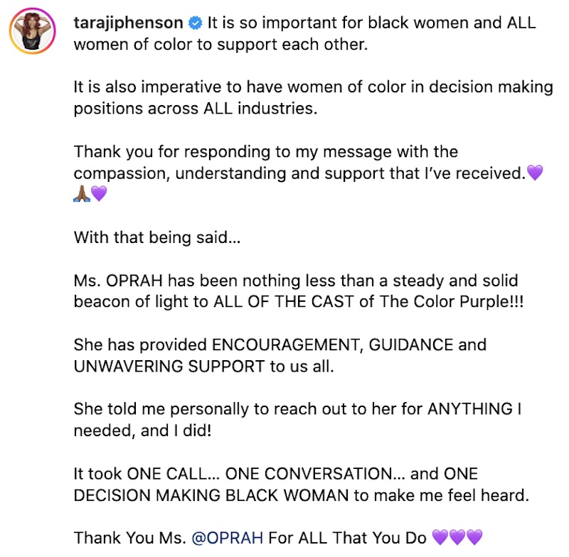 Moments ago, Henson took to social media to express gratitude for the love she’s received following her remarks and went on to spotlight Winfrey for having her back.