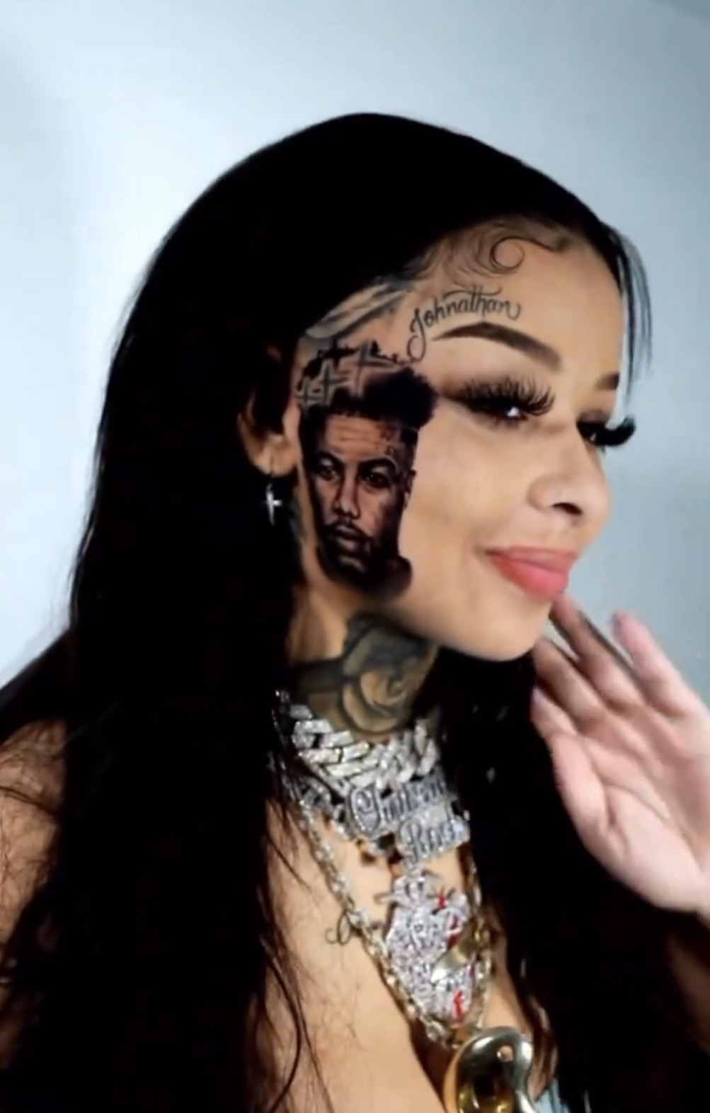 Taking to social media, the 23-year-old shared a clip of herself getting a tattoo of Blueface on her… face.