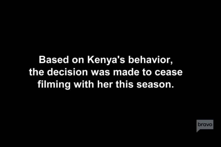 “Based on Kenya’s behavior, the decision was made to cease filming with her this season.”