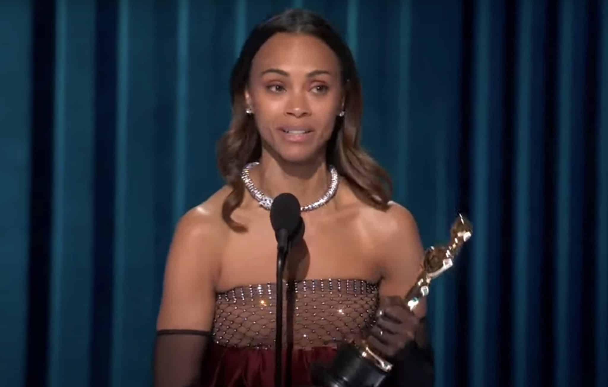 Zoe Saldana is putting a fresh spin on awards season tradition by proudly declaring her Oscar goes by they/them.