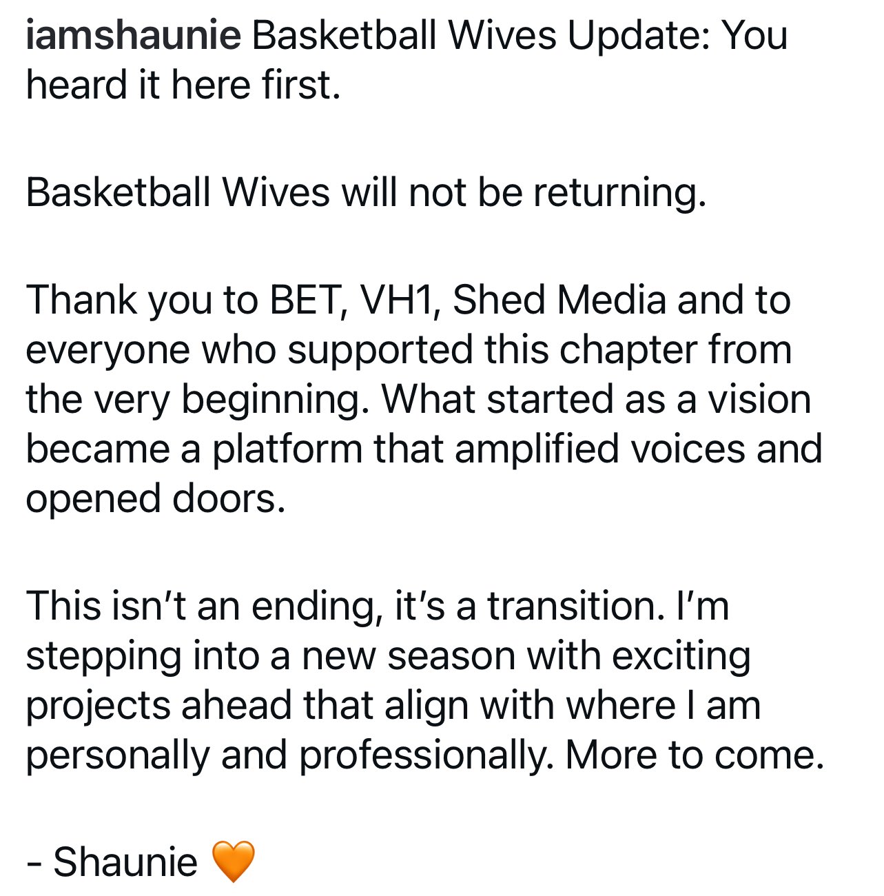 Taking to Instagram, Shaunie shared that the final whistle has been blown on the show.