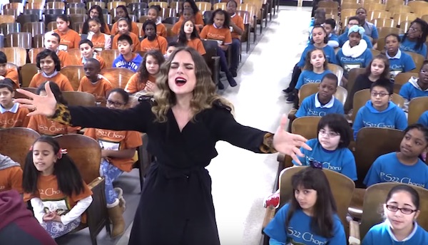 The songbird teamed up with talented singers at Public School 22 in Staten Island to perform ‘Say Love’ from her summer ‘Tringle.’